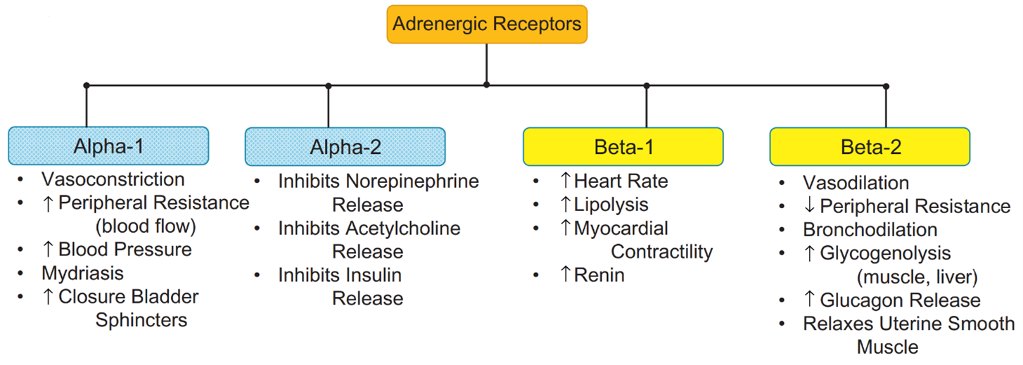 图4 肾上腺素作用于不同受体的生理功能(图片来源于ScienceDirect)