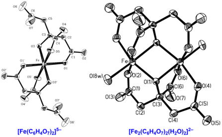 图4 柠檬酸与铁离子形成络合物的晶体结构[5,6]