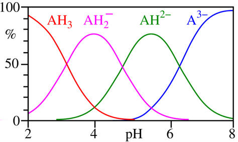图2 不同pH下柠檬酸的物种分布(图片来源于维基百科)