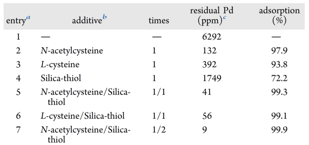 表8 残留钯的去除实验