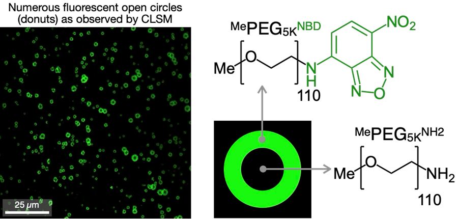 图1:使用共聚焦激光扫描显微镜(CLSM)可视化末端结构不同的PEGs的同心圆状分离。