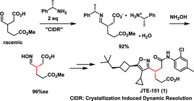 Practical Synthesis of Chiral 3‑(Hydroxyiminomethyl)adipic Acid, a Key Intermediate of the ROR‑γ Inhibitor JTE-151, via CrystallizationInduced Dynamic Resolution.