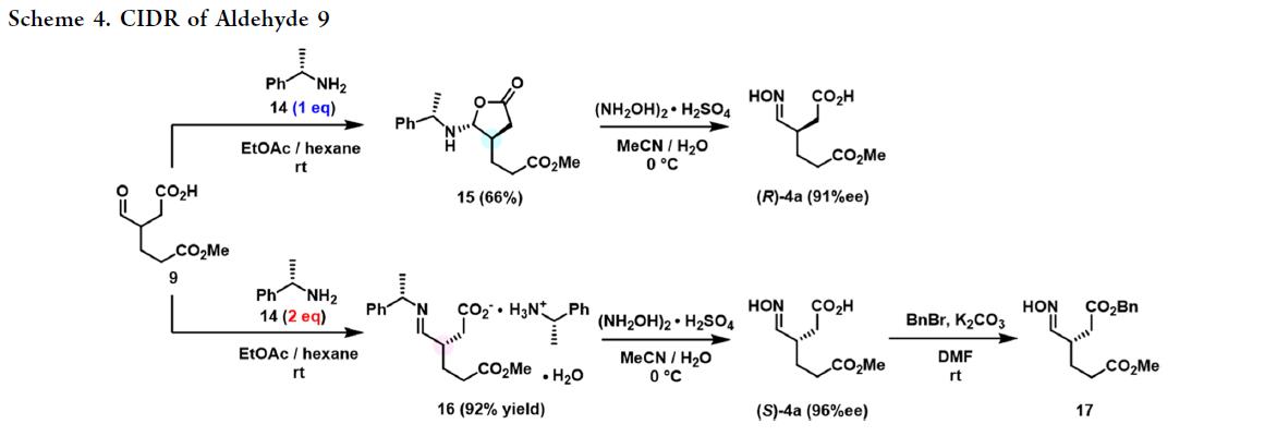 首先,作者对三种合成关键手性中间体(S)-4a(3-(羟基亚氨基甲基)己二酸)及其等效物(7)(scheme 2)的策略进行了评估:不对称烷基化、不对称氢化和结晶诱导动态拆分(CIDR)。
