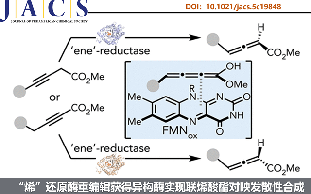 近日,西湖大学叶宇轩教授团队将传统的氧化还原酶(黄素依赖型“烯”还原酶(EREDs))进行重新编辑,获得新型异构酶,其可催化炔酸酯发生氧化还原中性的立体选择性 1,3 质子转移,成功构建了一系列具有不同结构的手性联烯酸酯。本工作首次将EREDs拓展为轴向手性构建的质子转移酶催化平台。