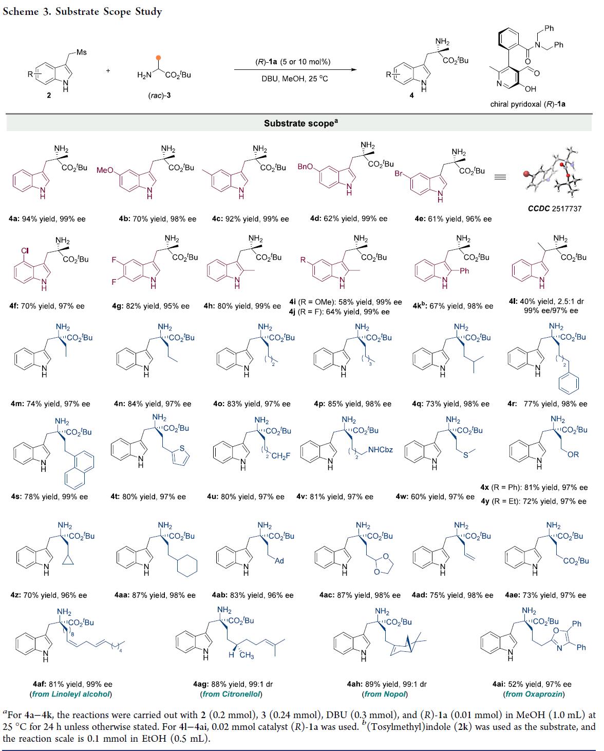 “Chiral Pyridoxals Enabled Efficient Enantioselective Synthesis of α-Substituted Tryptophan Derivatives