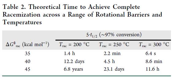 热消旋化计算势垒的实验验证及概念验证