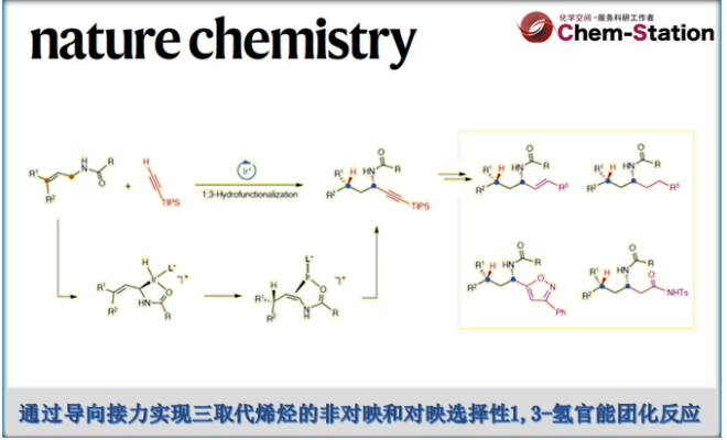 Nat. Chem.:通过导向接力实现三取代烯烃的非对映和对映选择性1,3-氢官能团化反应