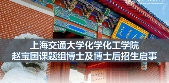 上海交通大学化学化工学院赵宝国课题组2026级博士研究生及博士后招生启事