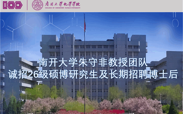 朱守非教授团队诚聘博士后(长期有效)、招收2026 年秋季入学硕博研究生多名。2026级博士生报名时间为3月25日-4月15日,请有意向者尽快联系。欢迎有志于从事有机合成与金属有机化学研究的青年才俊加入我们!